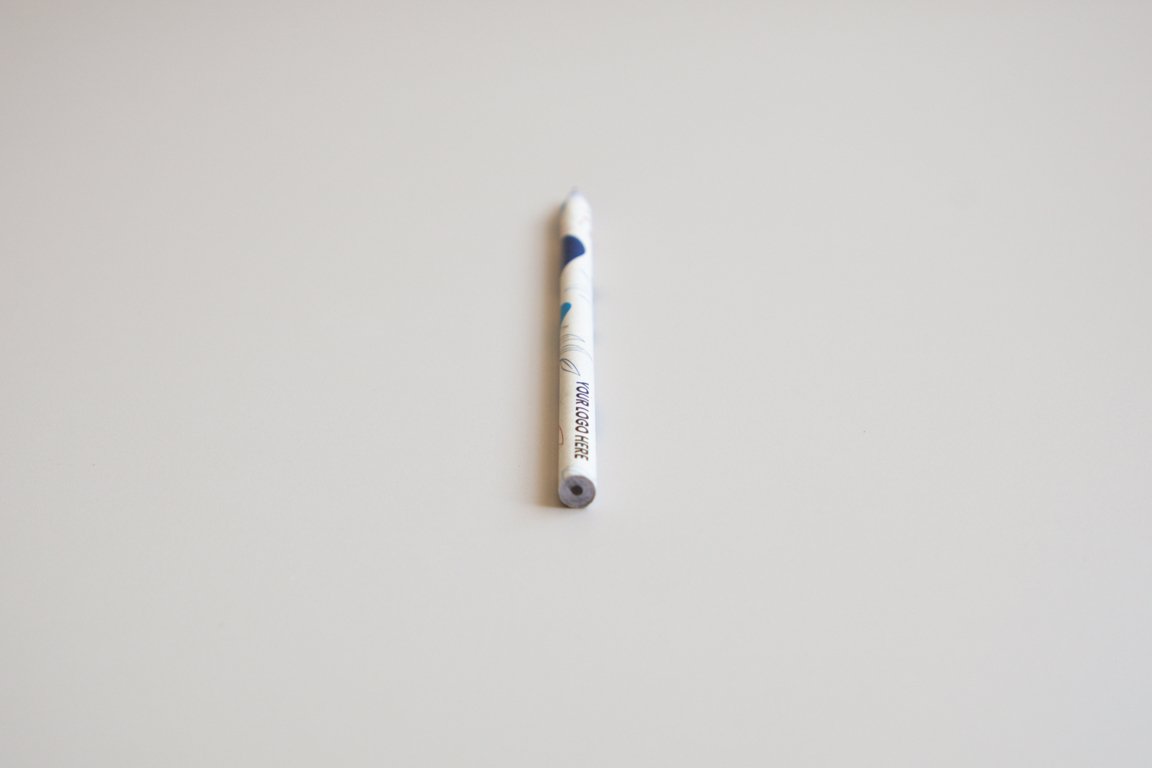 Un lápiz hecho con residuos de papel, en cuyo interior hay semillas de manzanilla. Cuando hagas punta, la viruta la podrás plantar en lugar de tirar. El lápiz se personaliza 360º a todo color y en todo el cuerpo.